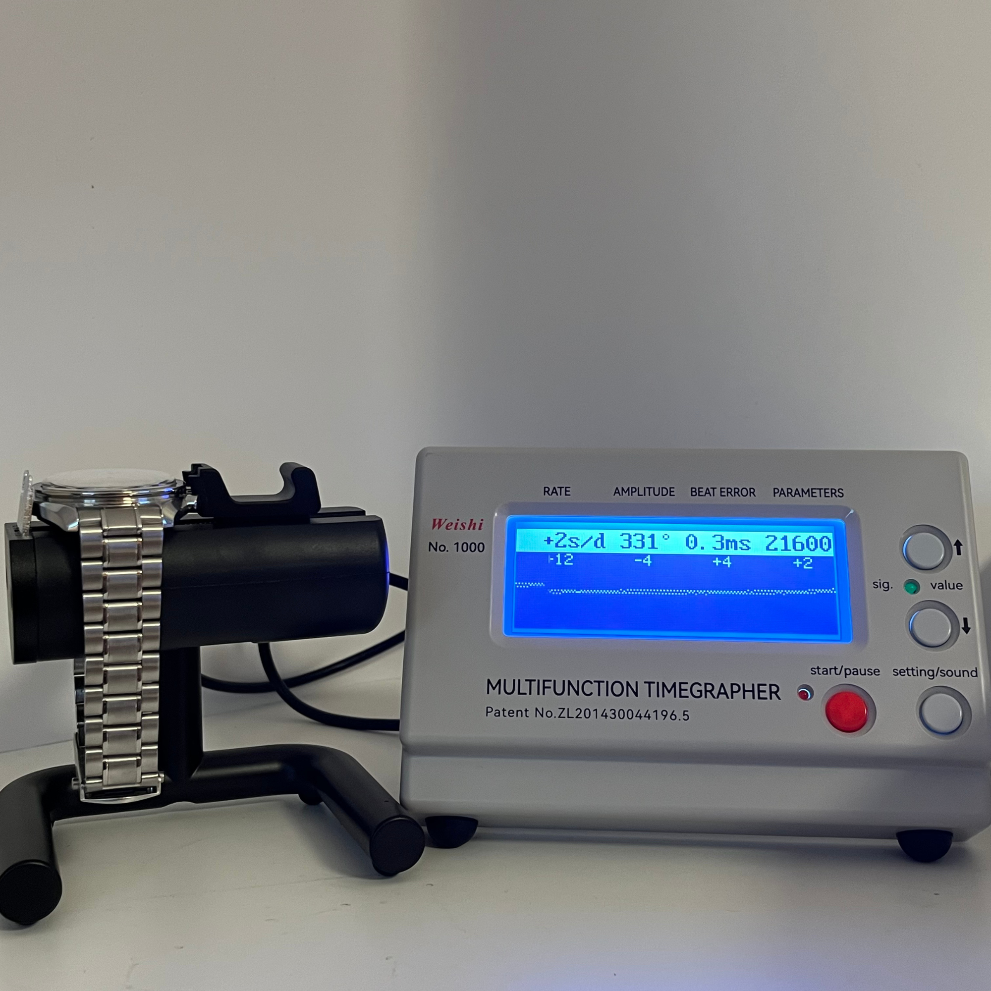 Die Uhr wurde kürzlich von einem erfahrenen freien Uhrmacher fachgerecht überholt und befindet sich auch optisch in hervorragendem Zustand. Sie läuft präzise mit einer Gangabweichung von lediglich +2 Sekunden pro Tag.