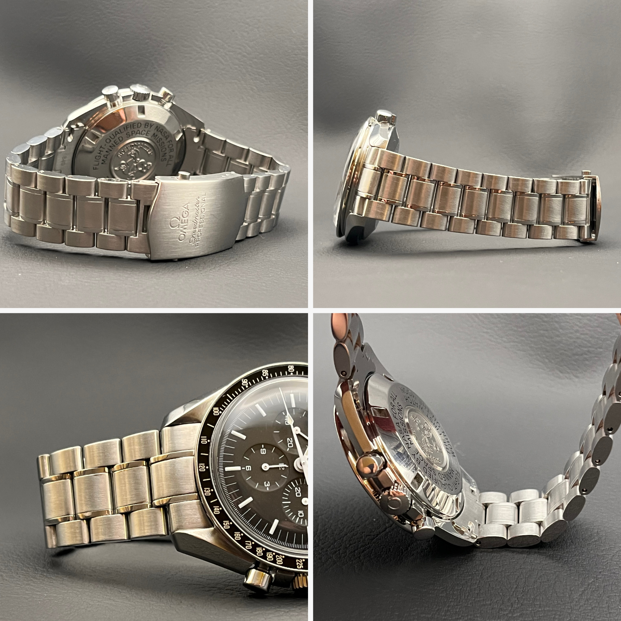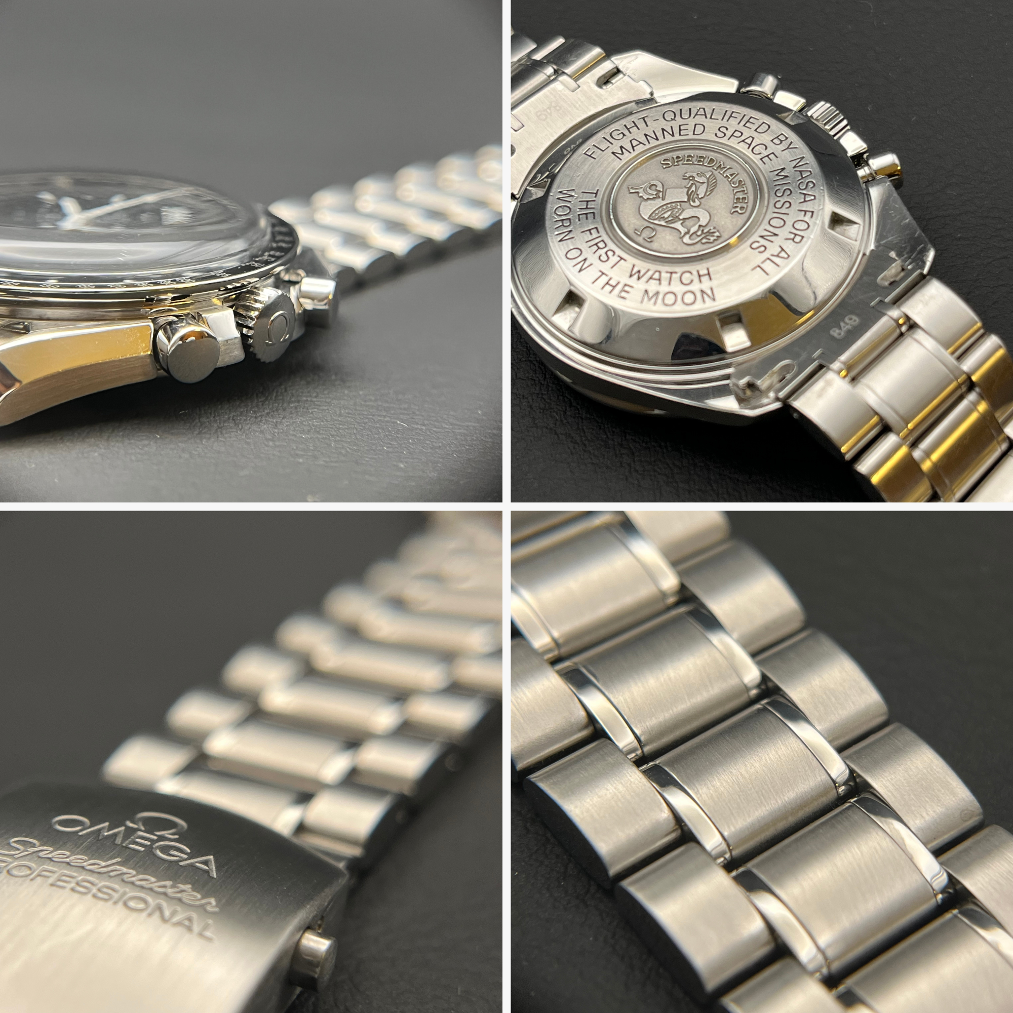 Angeboten wird eine Omega Speedmaster Professional Moonwatch, Referenz 145.0022, ausgestattet mit dem klassischen Kaliber 1861. Dieses Handaufzugswerk gilt als direkter Nachfolger des legendären Kalibers 861 und ist für seine Robustheit und Zuverlässigkeit bekannt.